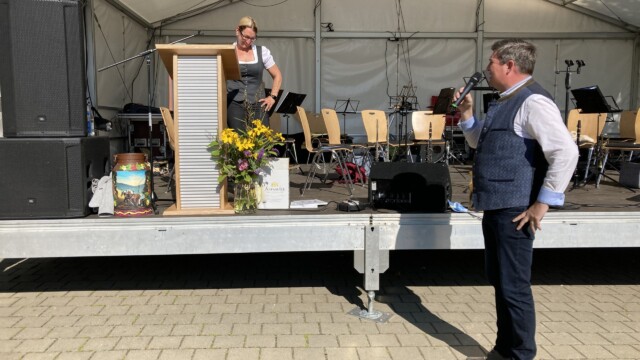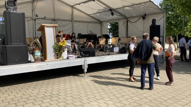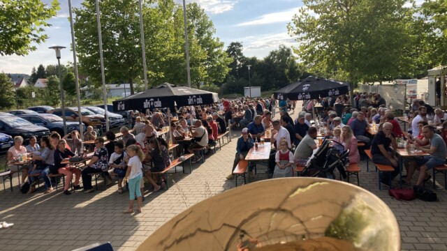 Die Premiere in Syrgenstein mit dem Syrgensteiner Sommerfest war ein voller Erfolg. Rund 1000 Menschen feierten am Samstag, den 06. August bei gradiosem Wetter auf dem Festplatz der Bachtalhalle und genossen die Veranstaltung. Nach der offiziellen Verkehrsfreigabe der erneuerten Schulstraße eröffnete das Jugendorchester Syrgenstein (JoSy) das Fest mit modernen Stücken unter der Leitung von Andreas Buchmeyer. Anschließend durften sich die Gäste bei zünftiger Blasmusik vom Musikverein Staufen unterhalten lassen bevor dann ab 22 Uhr der Dillinger DJ Markus van der Bunk die Stimmung zum Kochen brachte. Ausgelassen wurde bis in die Nacht hinein gefeiert und gesungen.